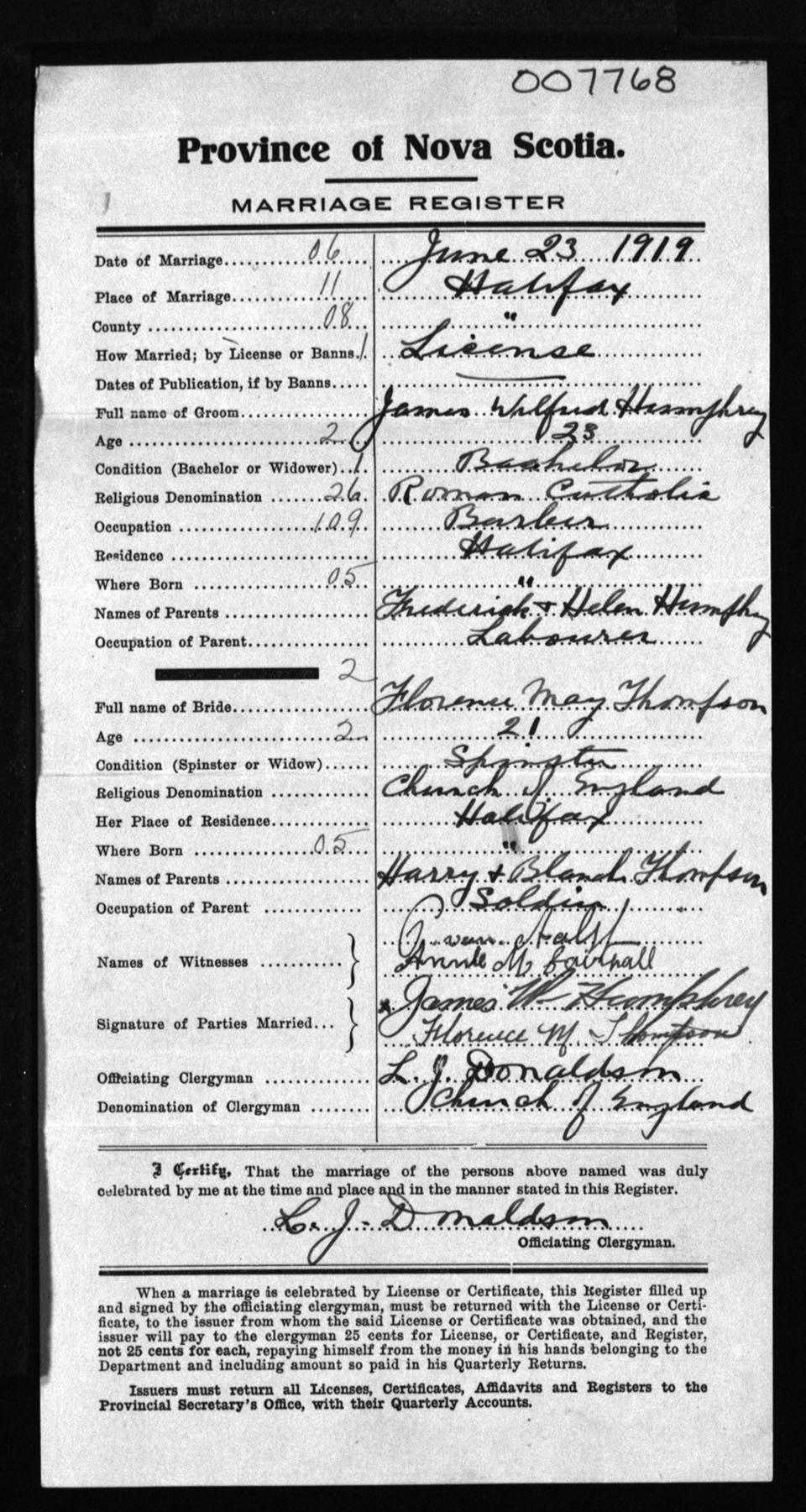 Registration: Year: 1919 number: 7768