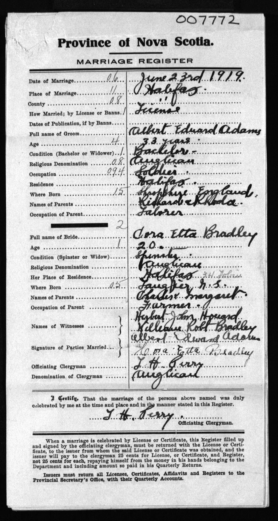 Registration: Year: 1919 number: 7772