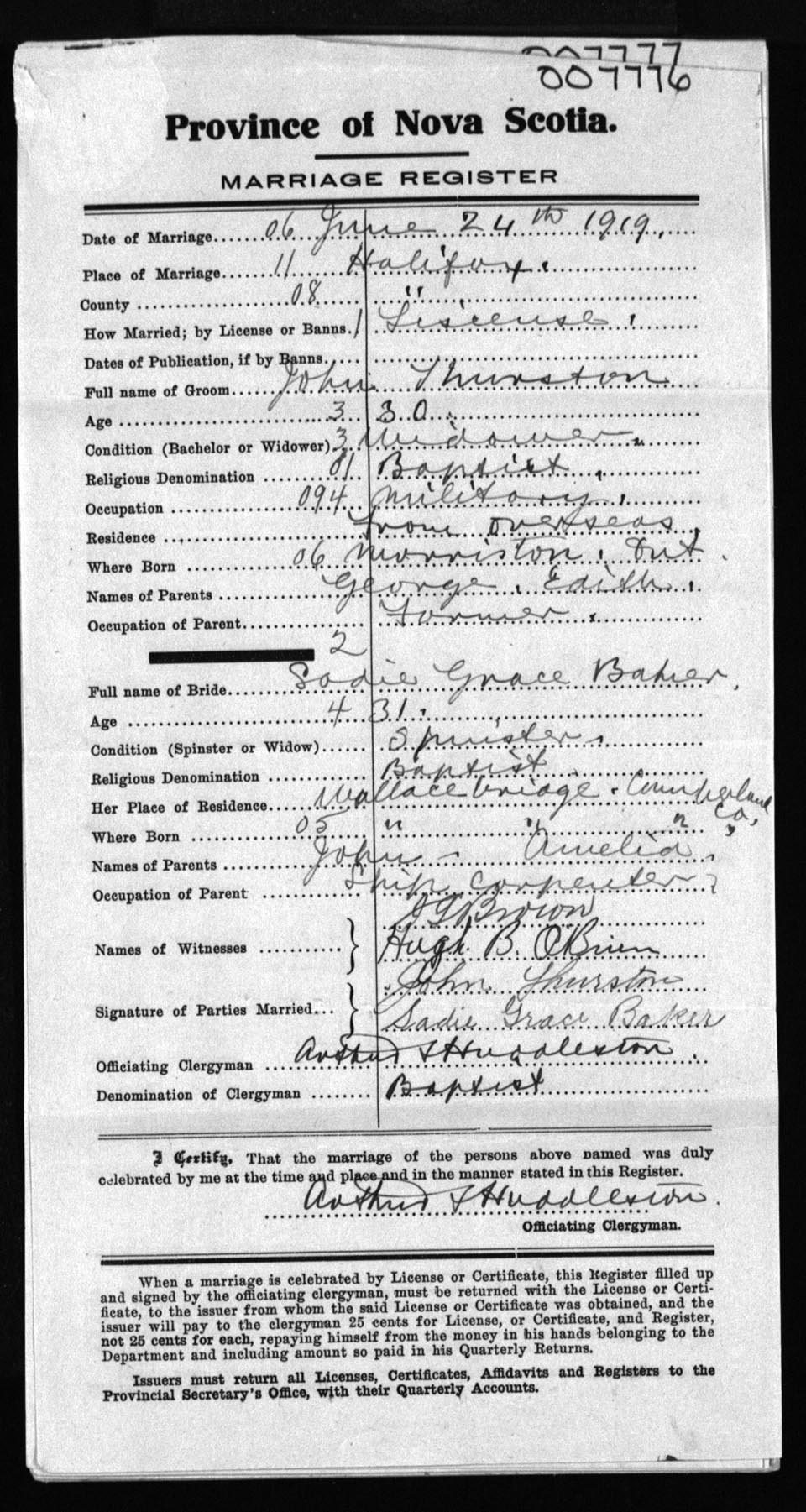 Registration: Year: 1919 number: 7776