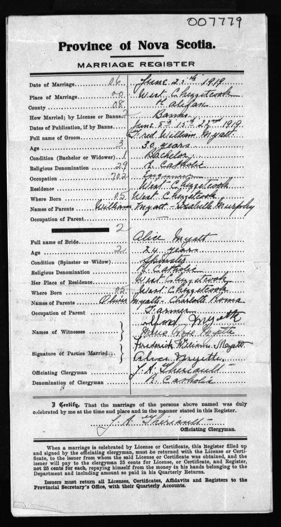 Registration: Year: 1919 number: 7779