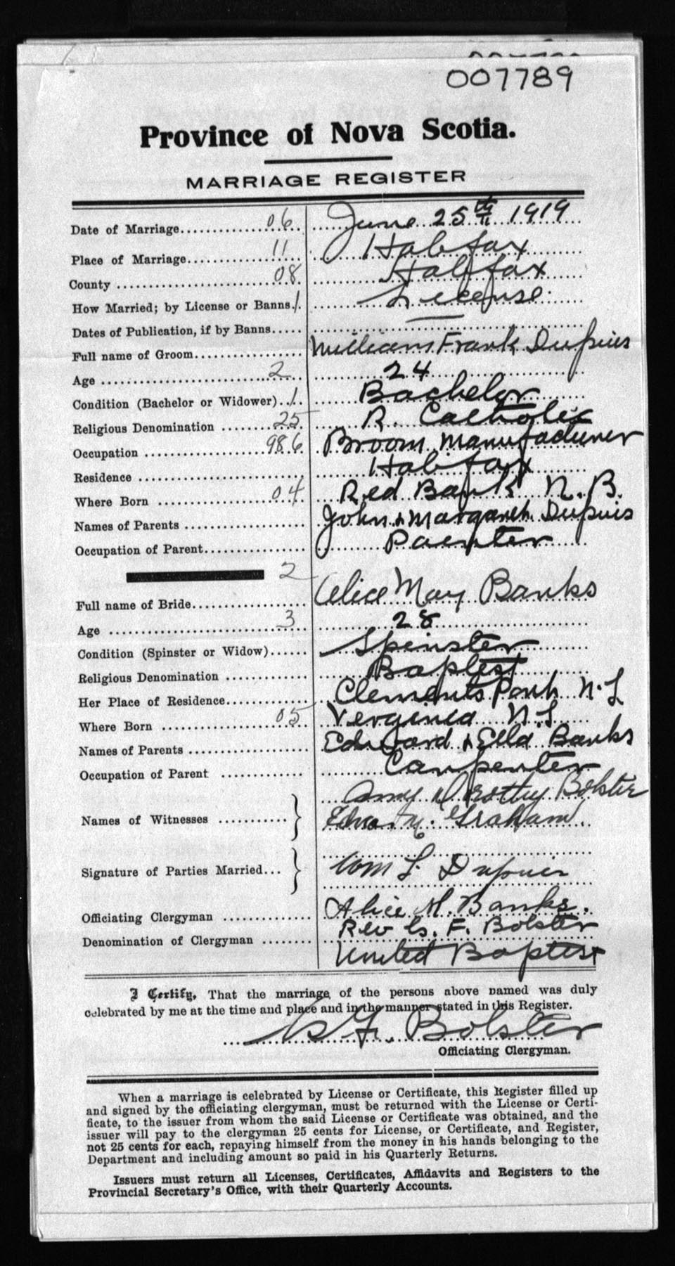 Registration: Year: 1919 number: 7789