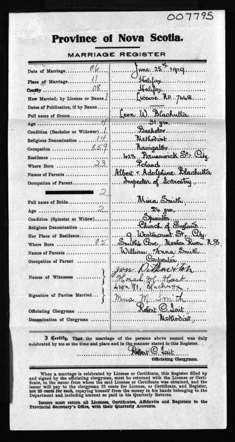 Registration: Year: 1919 number: 7795