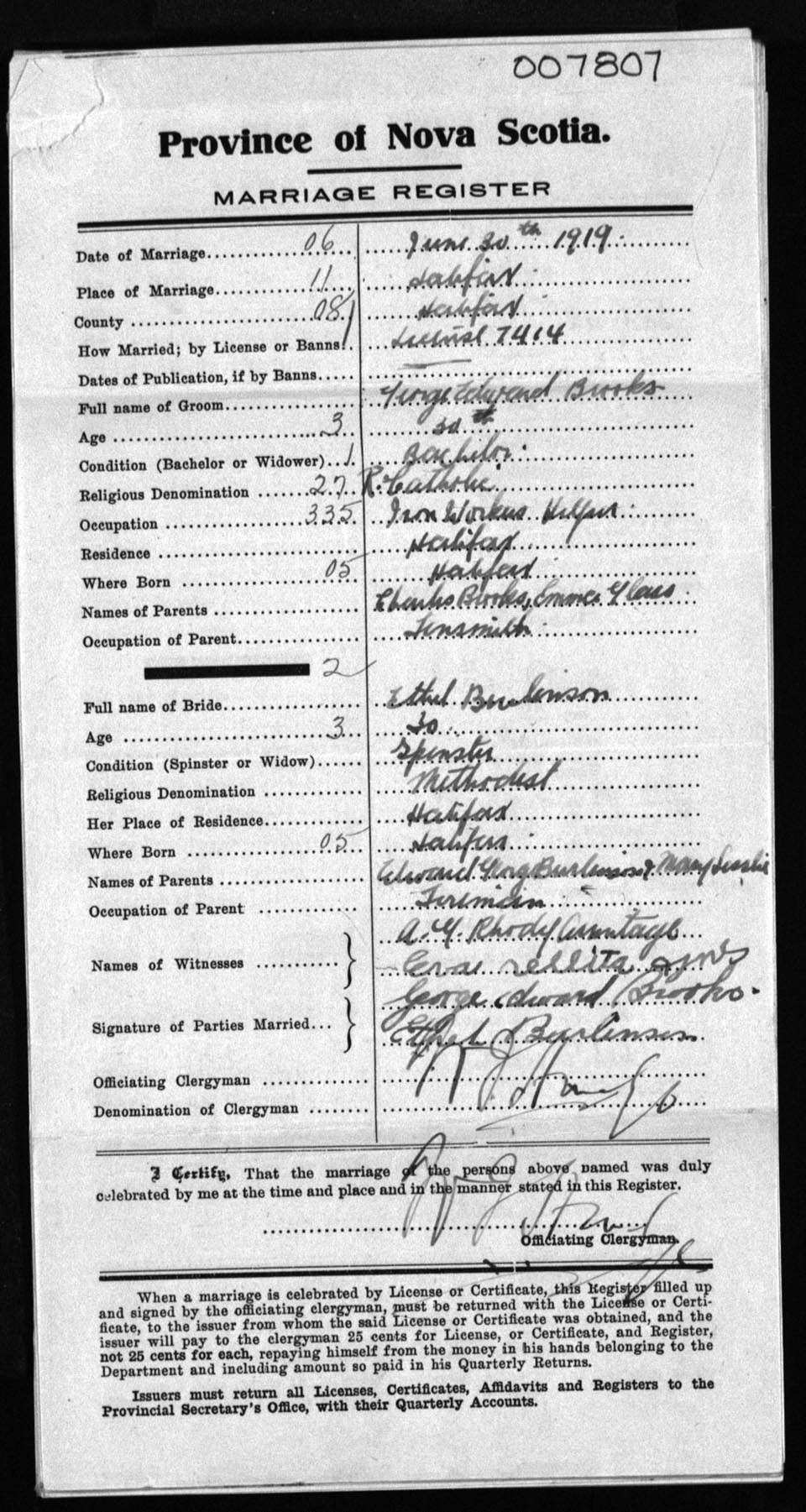 Registration: Year: 1919 number: 7807
