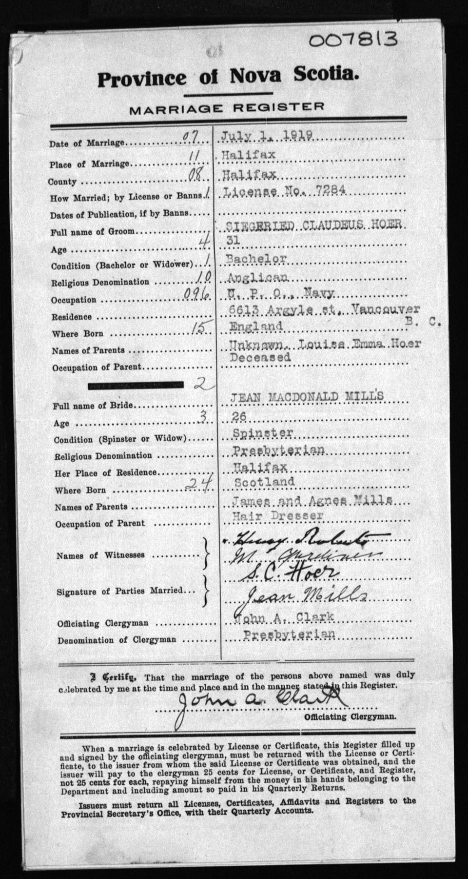 Registration: Year: 1919 number: 7813