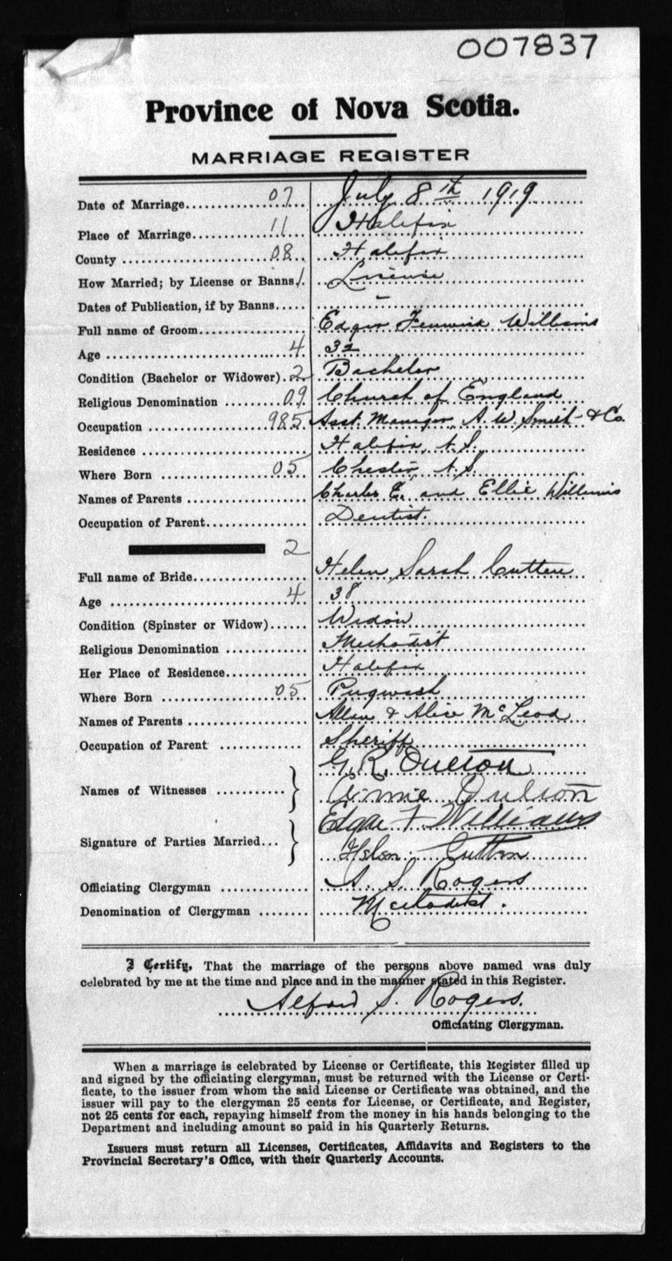 Registration: Year: 1919 number: 7837
