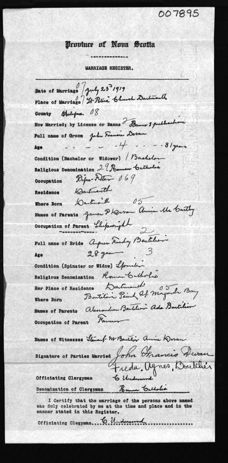 Registration: Year: 1919 number: 7895