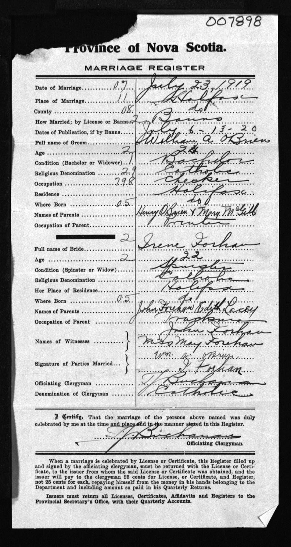 Registration: Year: 1919 number: 7898