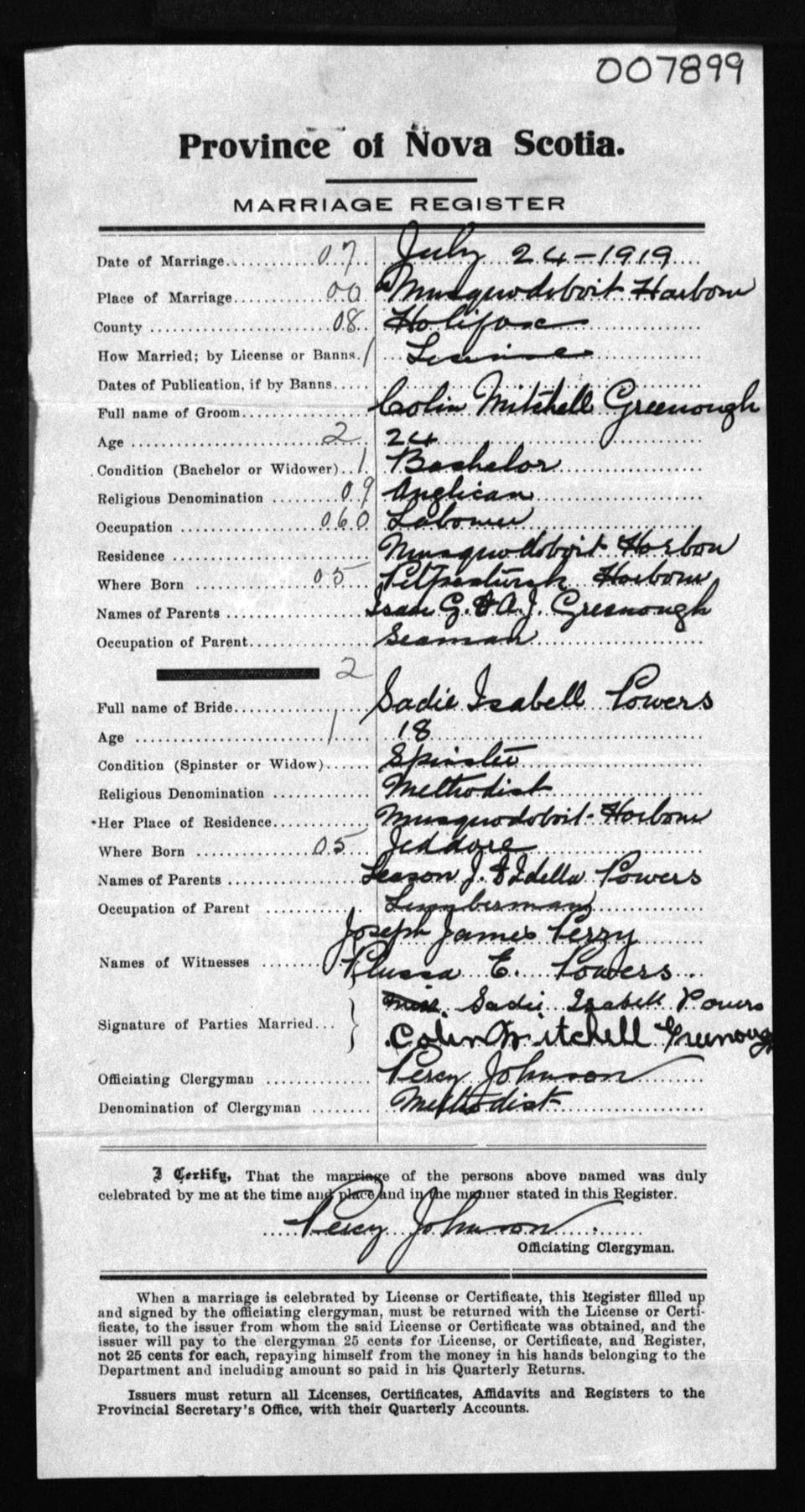 Registration: Year: 1919 number: 7899