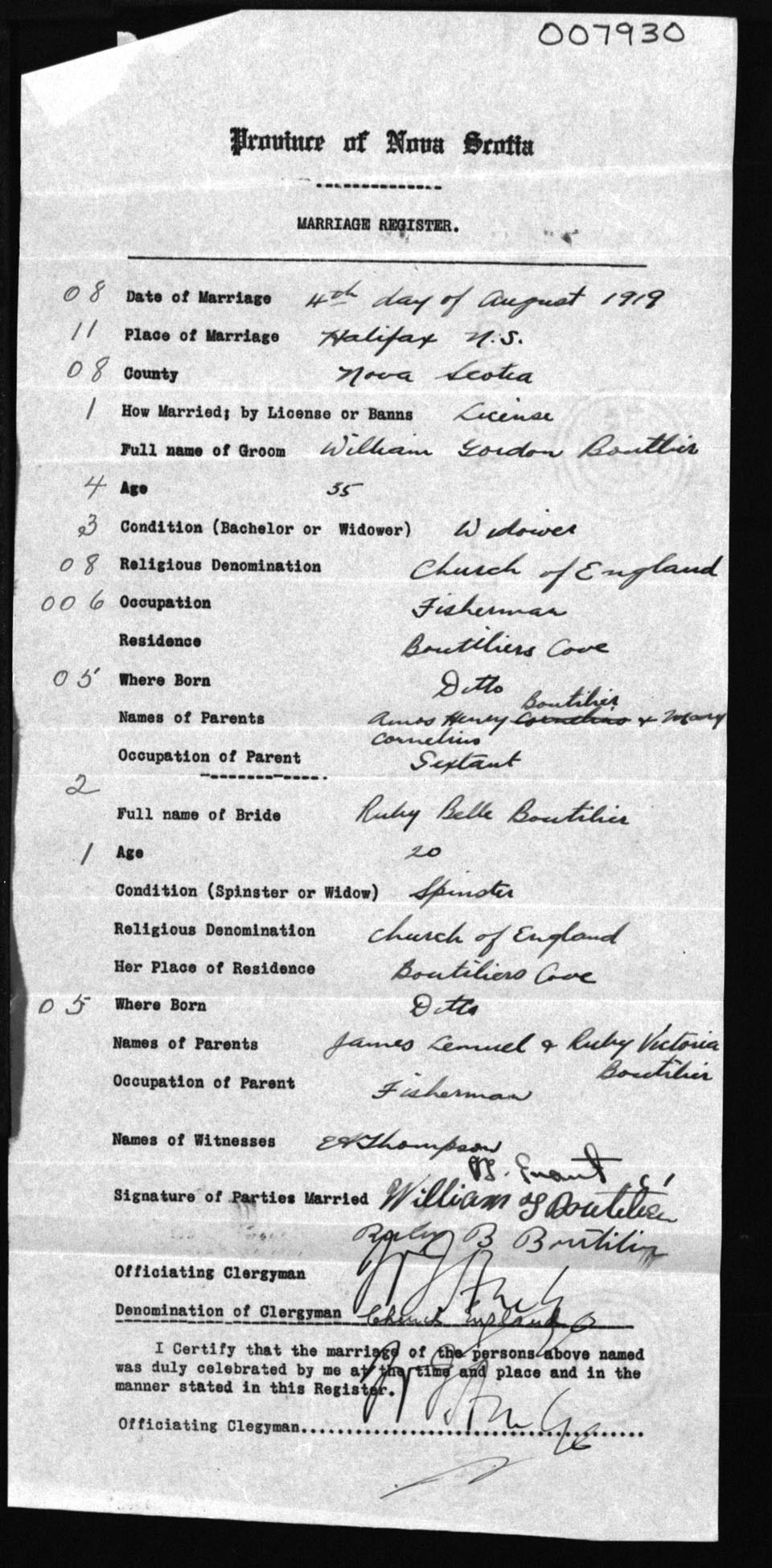 Registration: Year: 1919 number: 7930