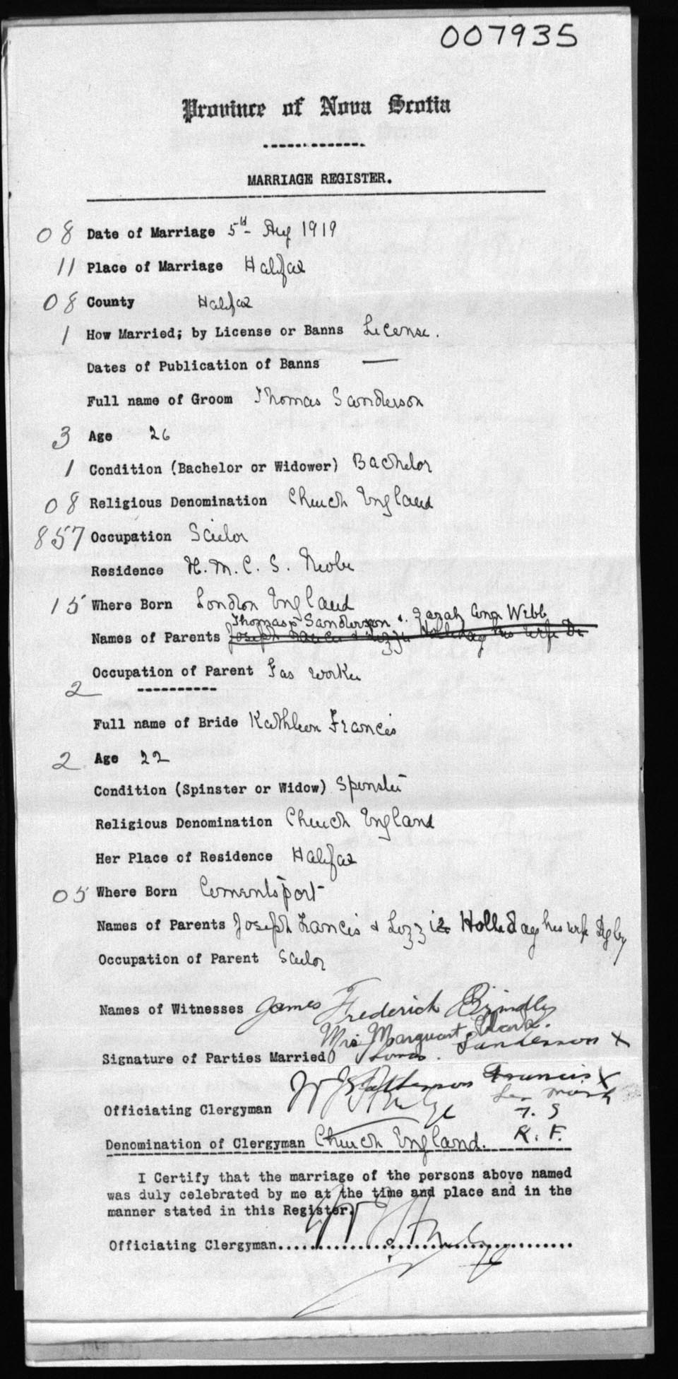 Registration: Year: 1919 number: 7935