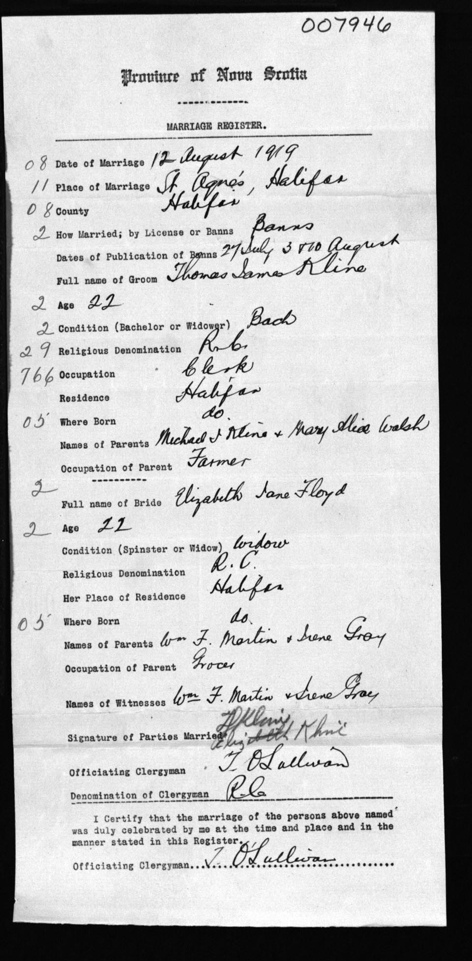 Registration: Year: 1919 number: 7946