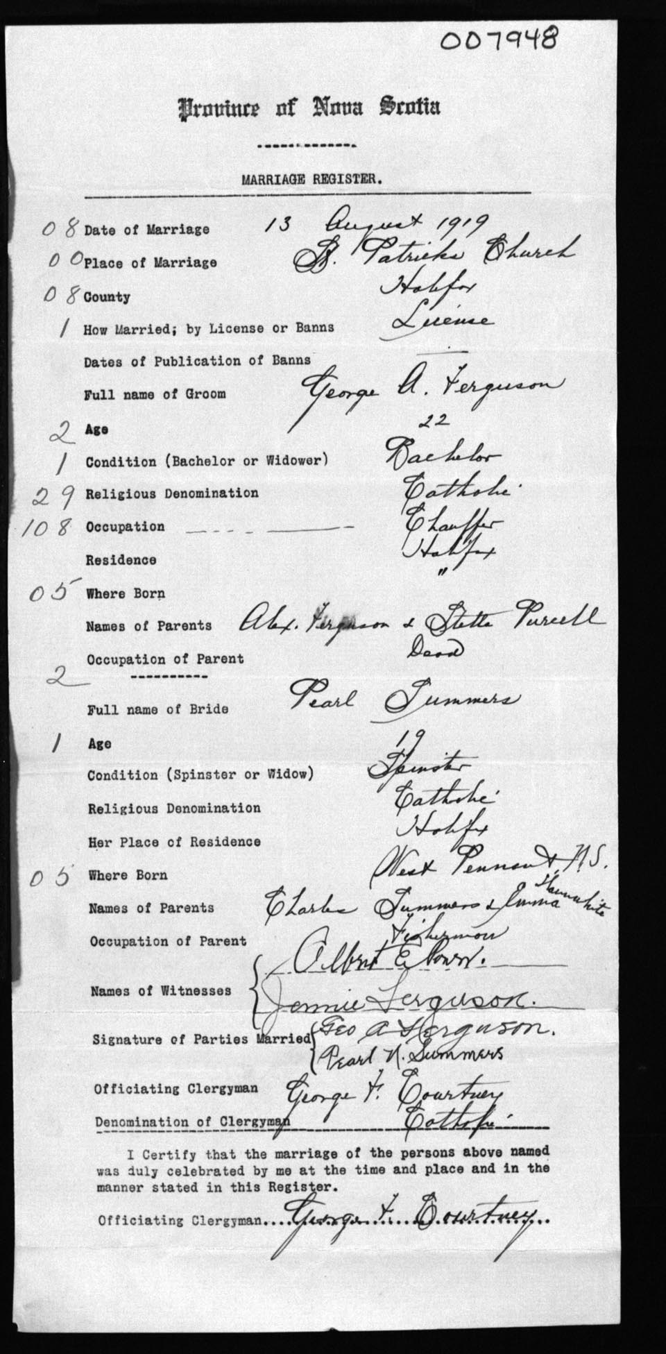 Registration: Year: 1919 number: 7948