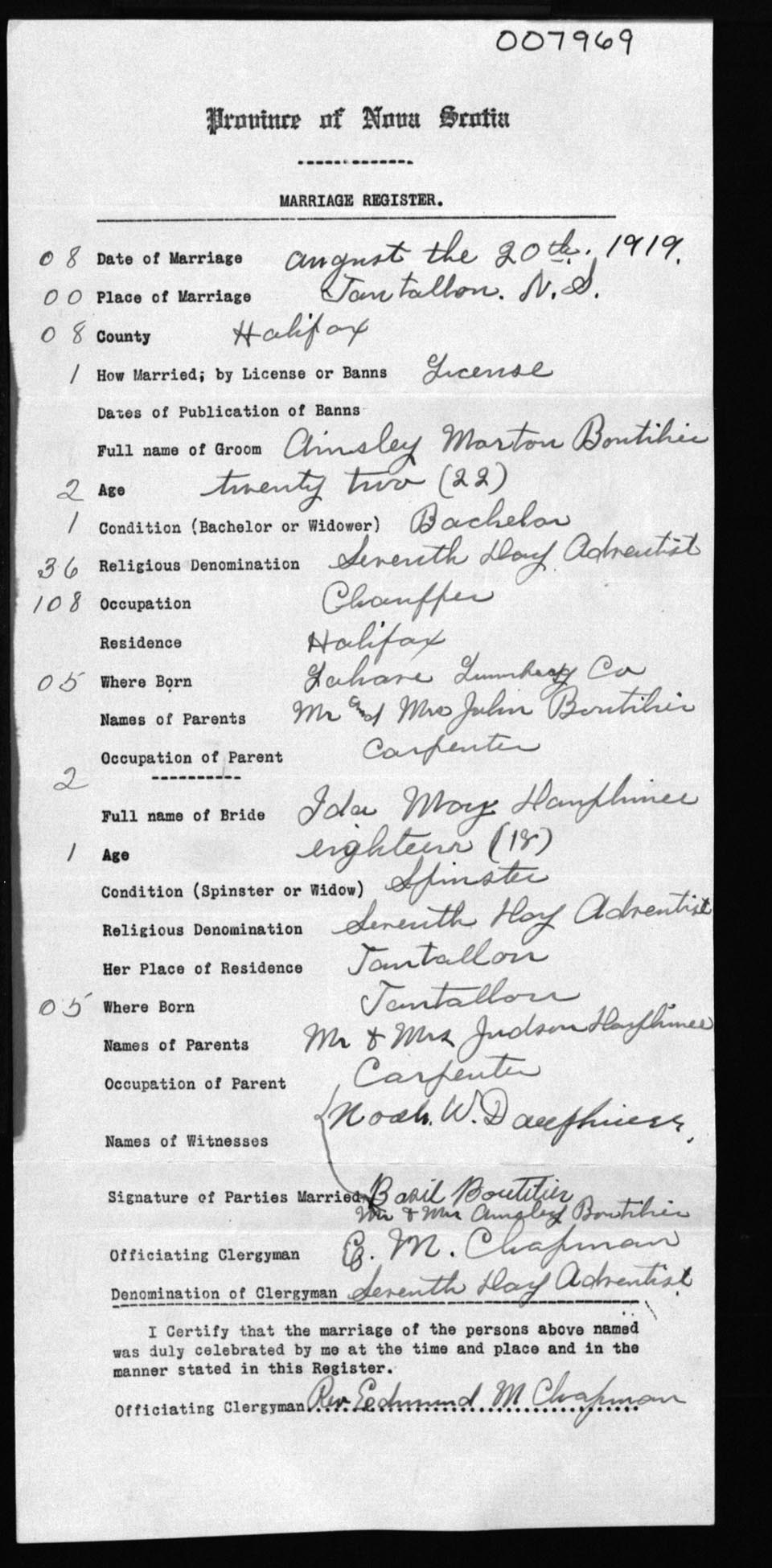 Registration: Year: 1919 number: 7969