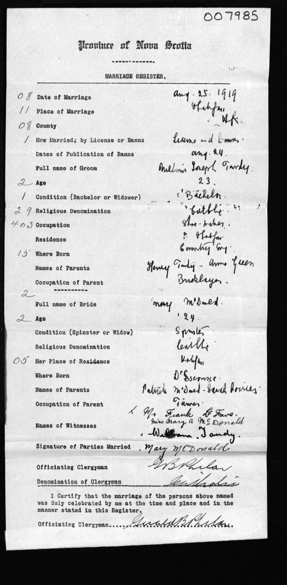 Registration: Year: 1919 number: 7985
