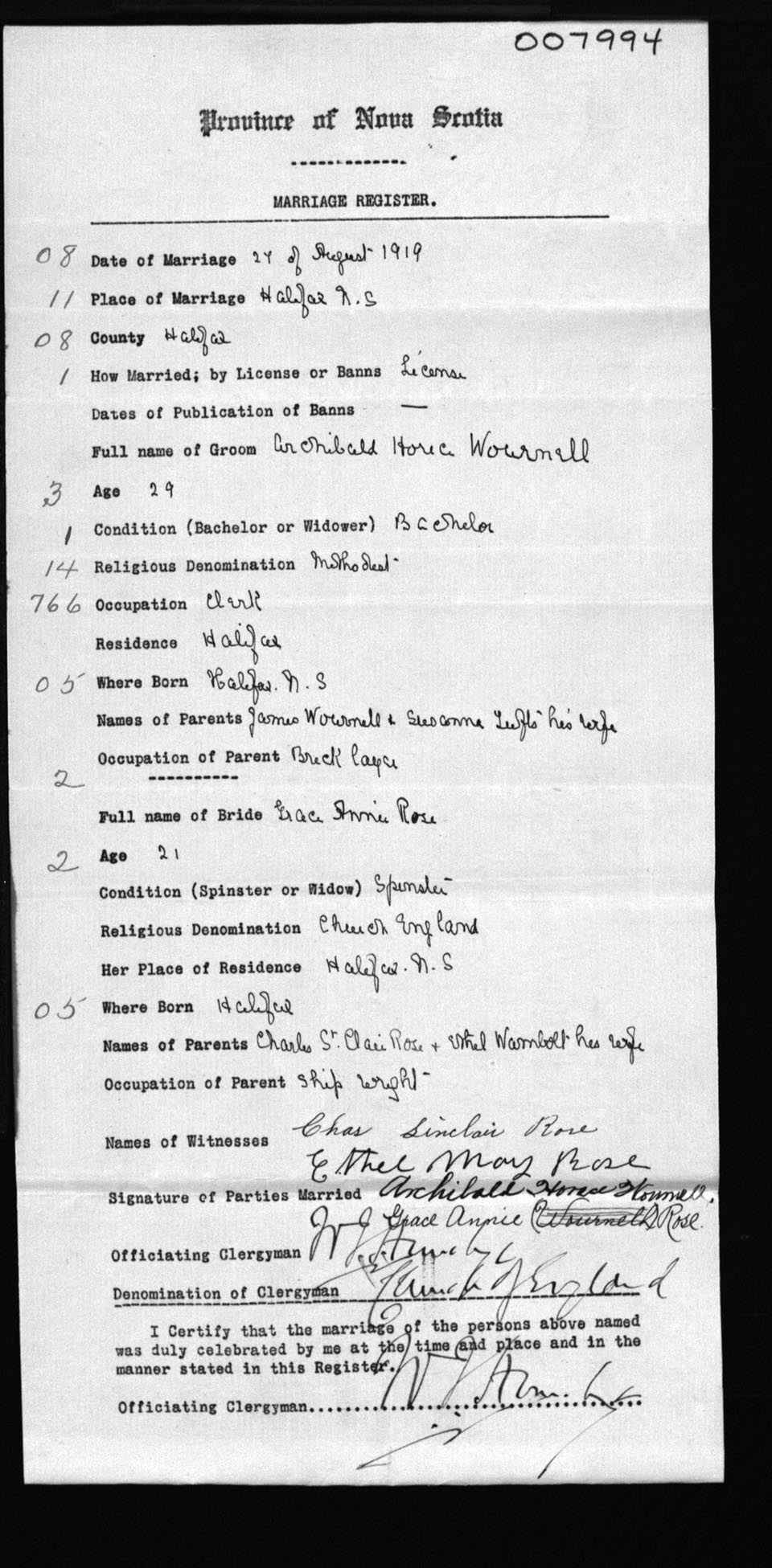 Registration: Year: 1919 number: 7994