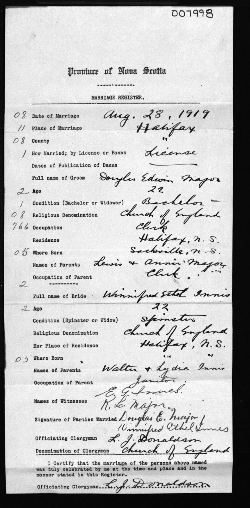 Registration: Year: 1919 number: 7998