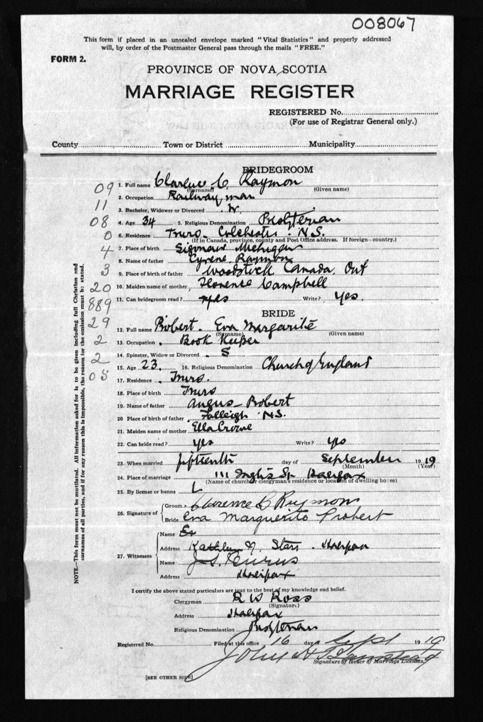 Registration: Year: 1919 number: 867