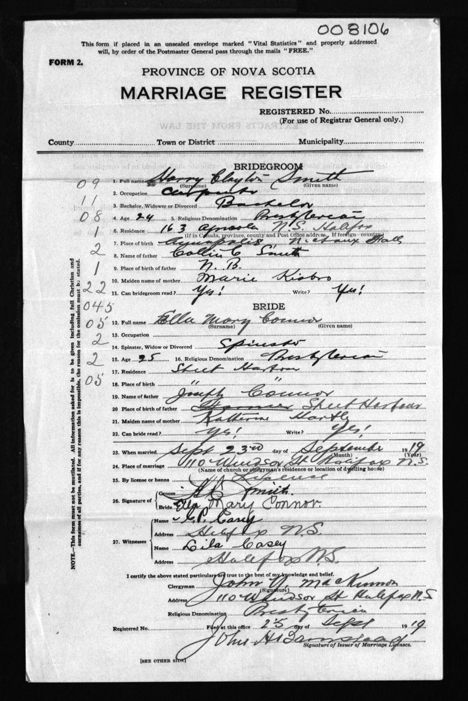 Registration: Year: 1919 number: 8106