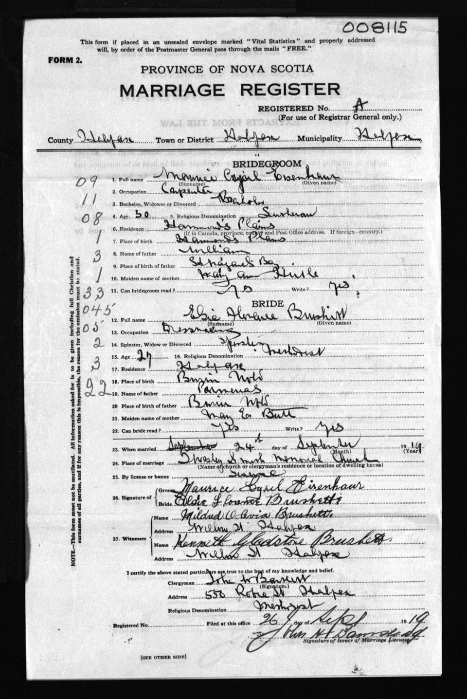 Registration: Year: 1919 number: 8115