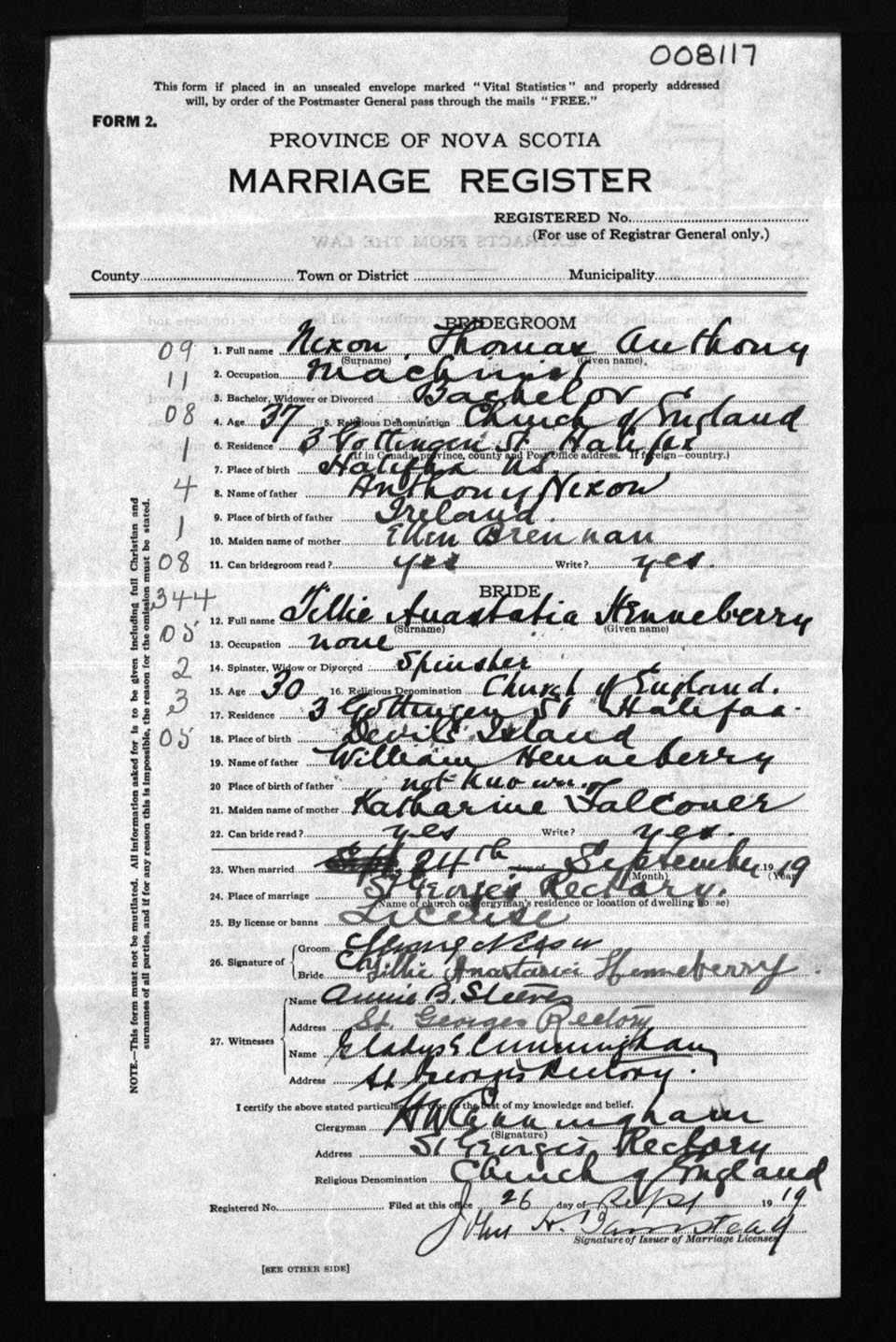 Registration: Year: 1919 number: 8117