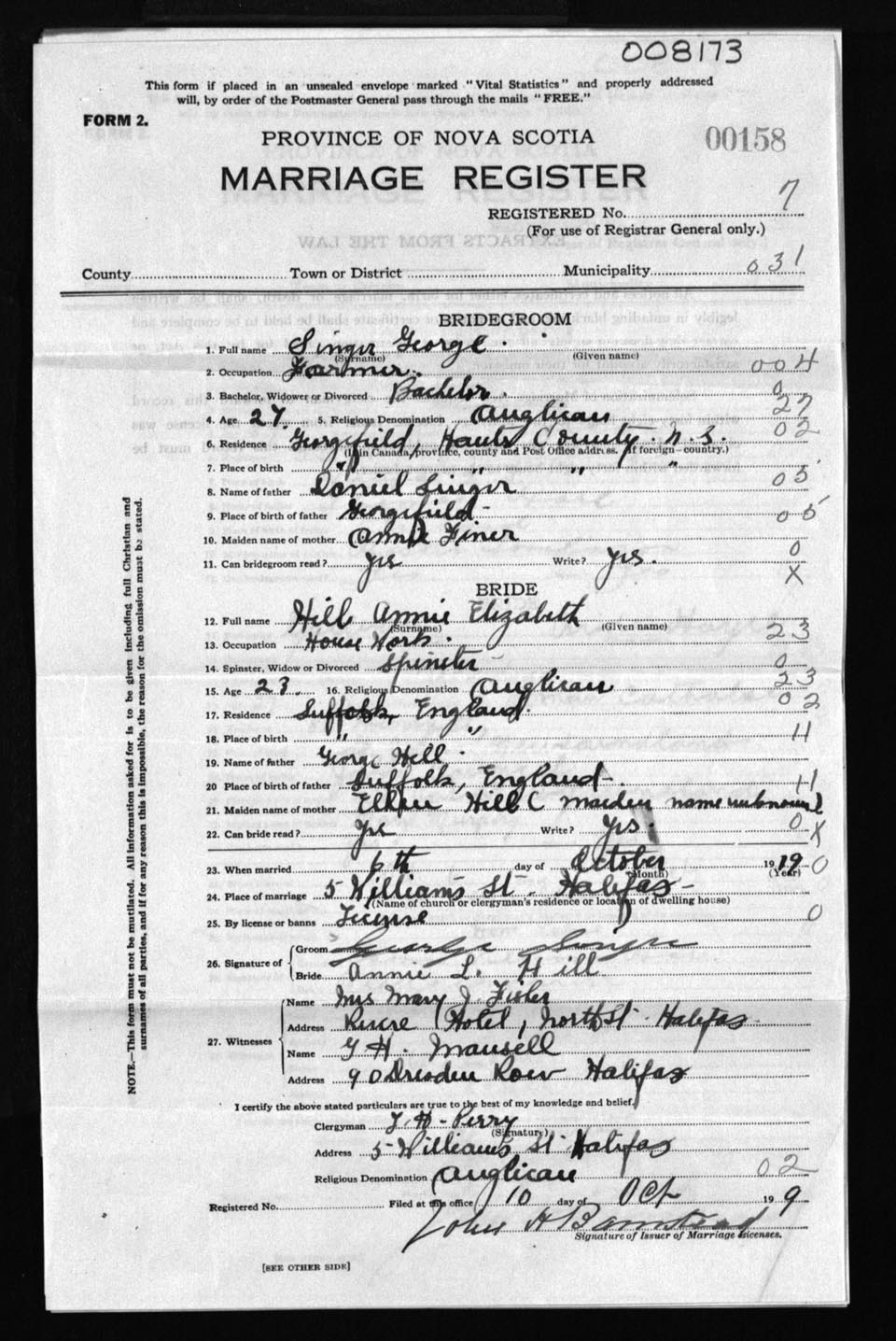Registration: Year: 1919 number: 8173