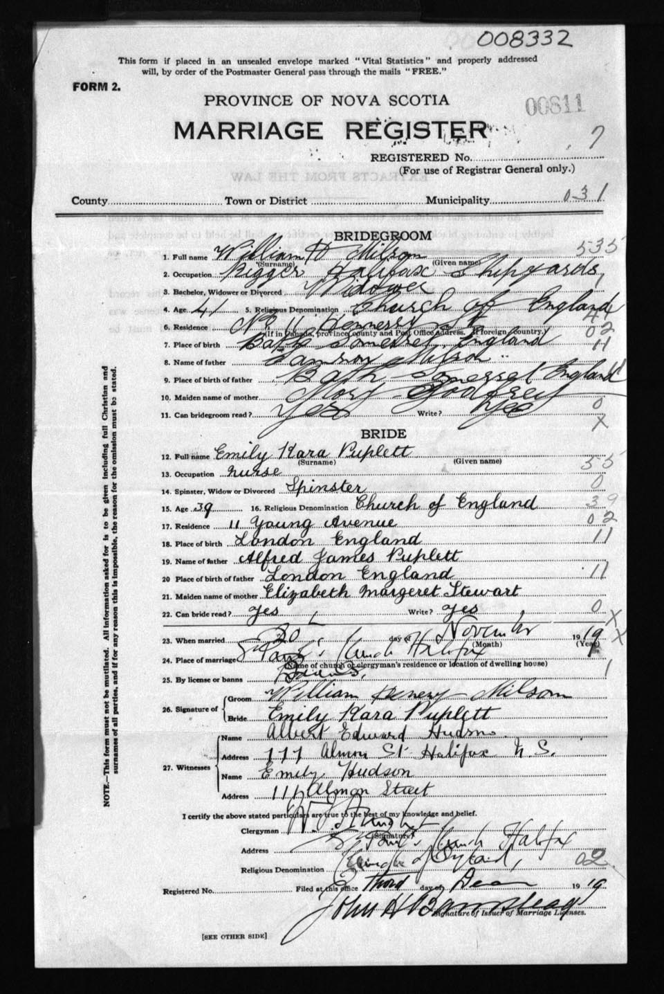 Registration: Year: 1919 number: 8332