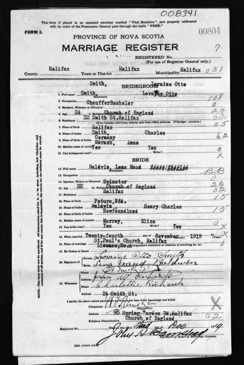 Registration: Year: 1919 number: 8341