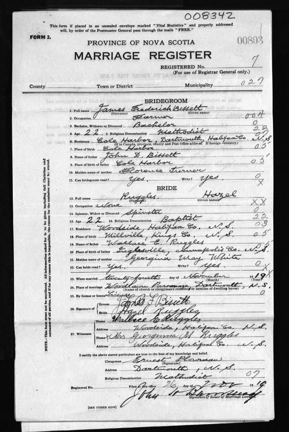Registration: Year: 1919 number: 8342