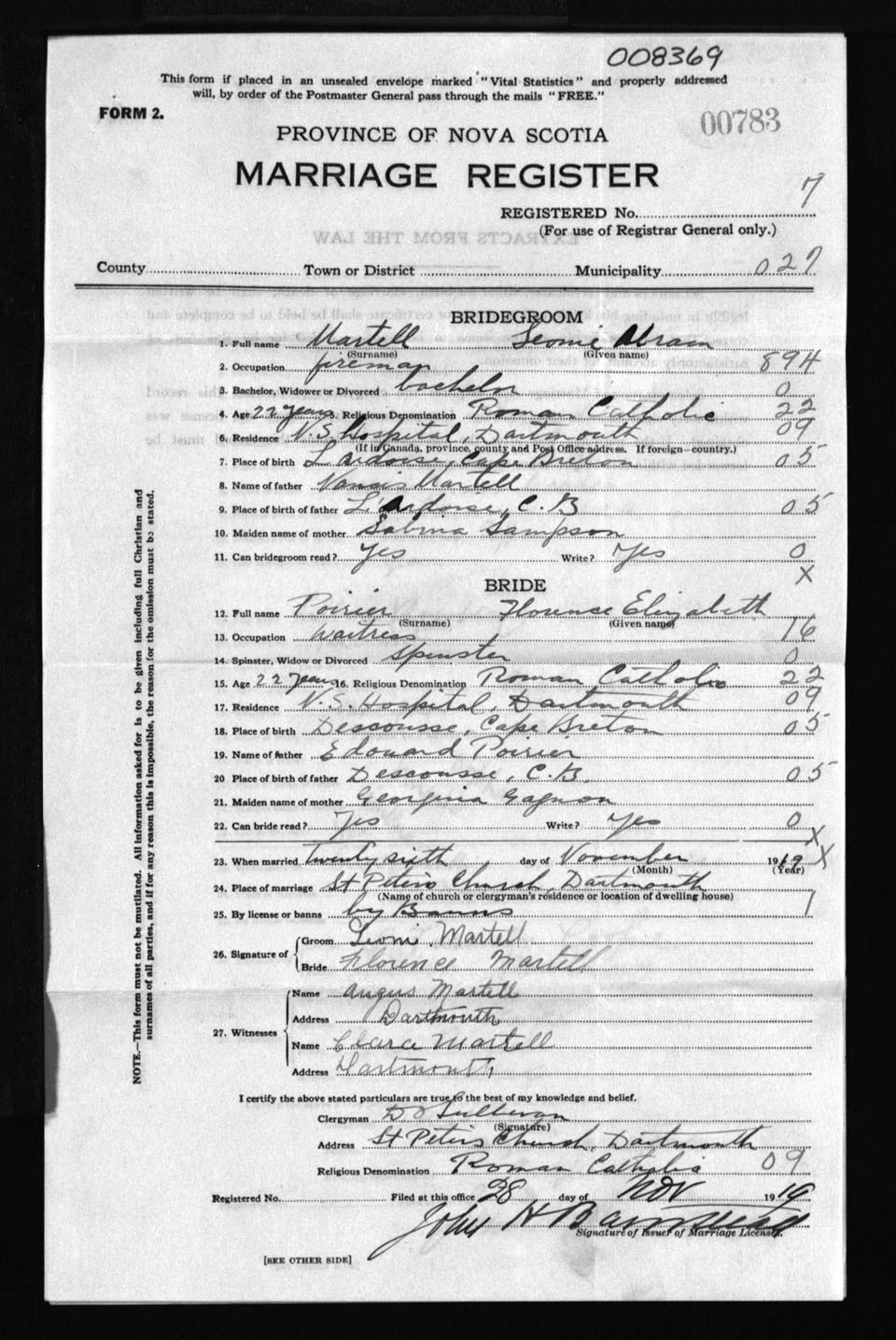 Registration: Year: 1919 number: 8369