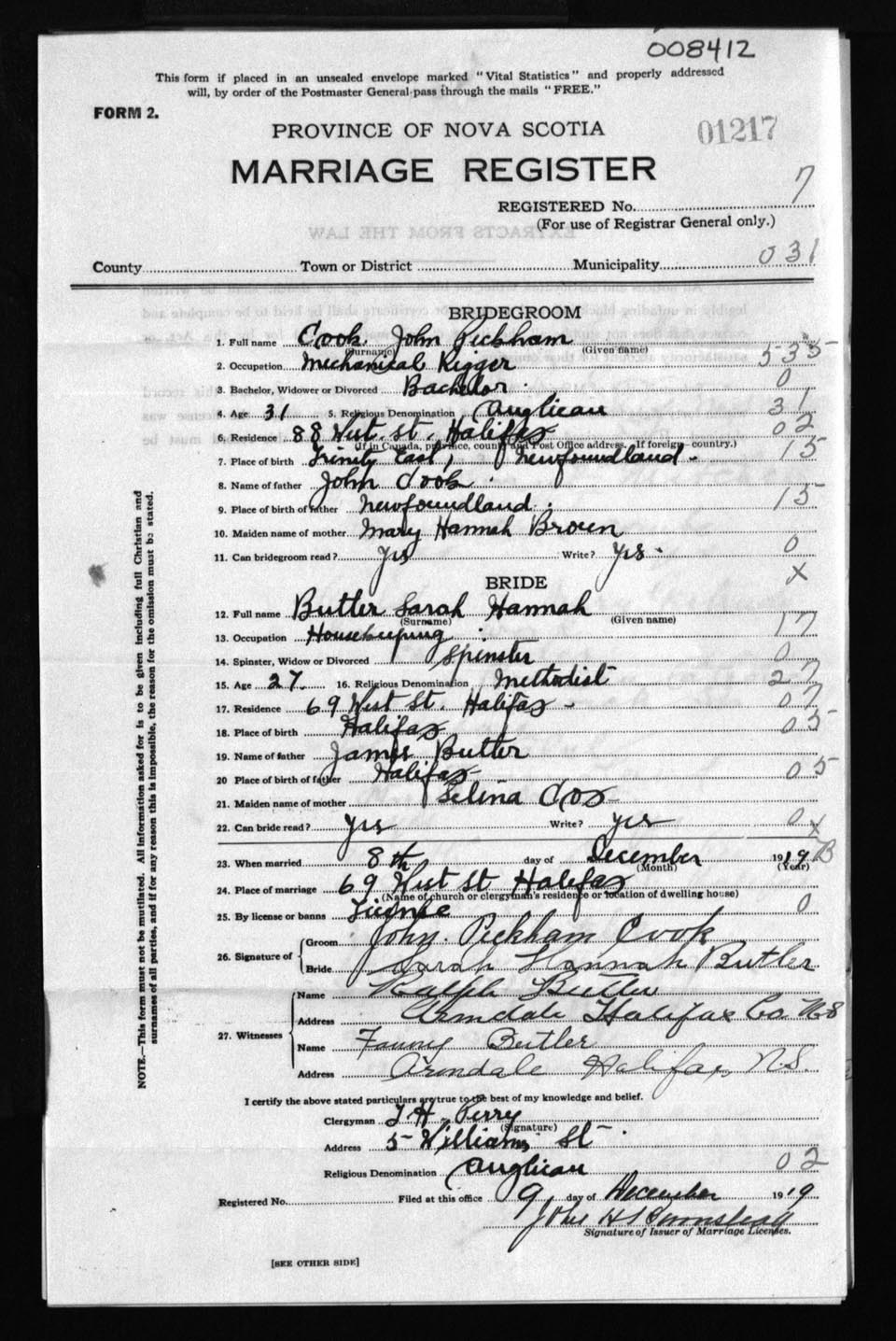 Registration: Year: 1919 number: 8412