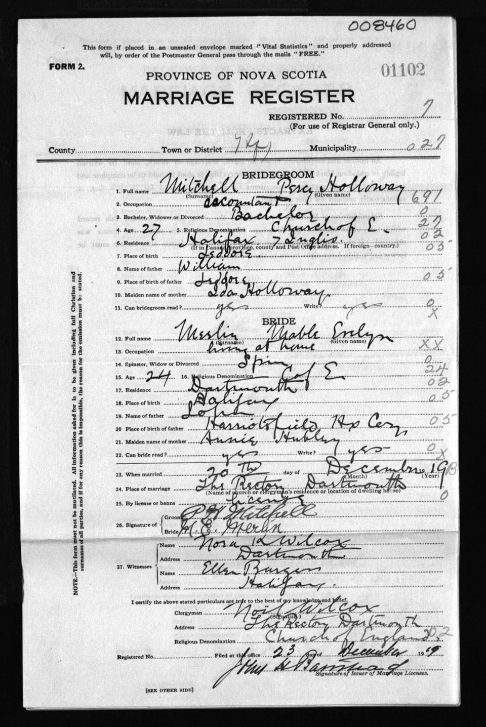 Registration: Year: 1919 number: 8460