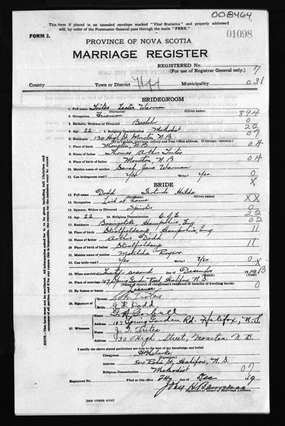 Registration: Year: 1919 number: 8464