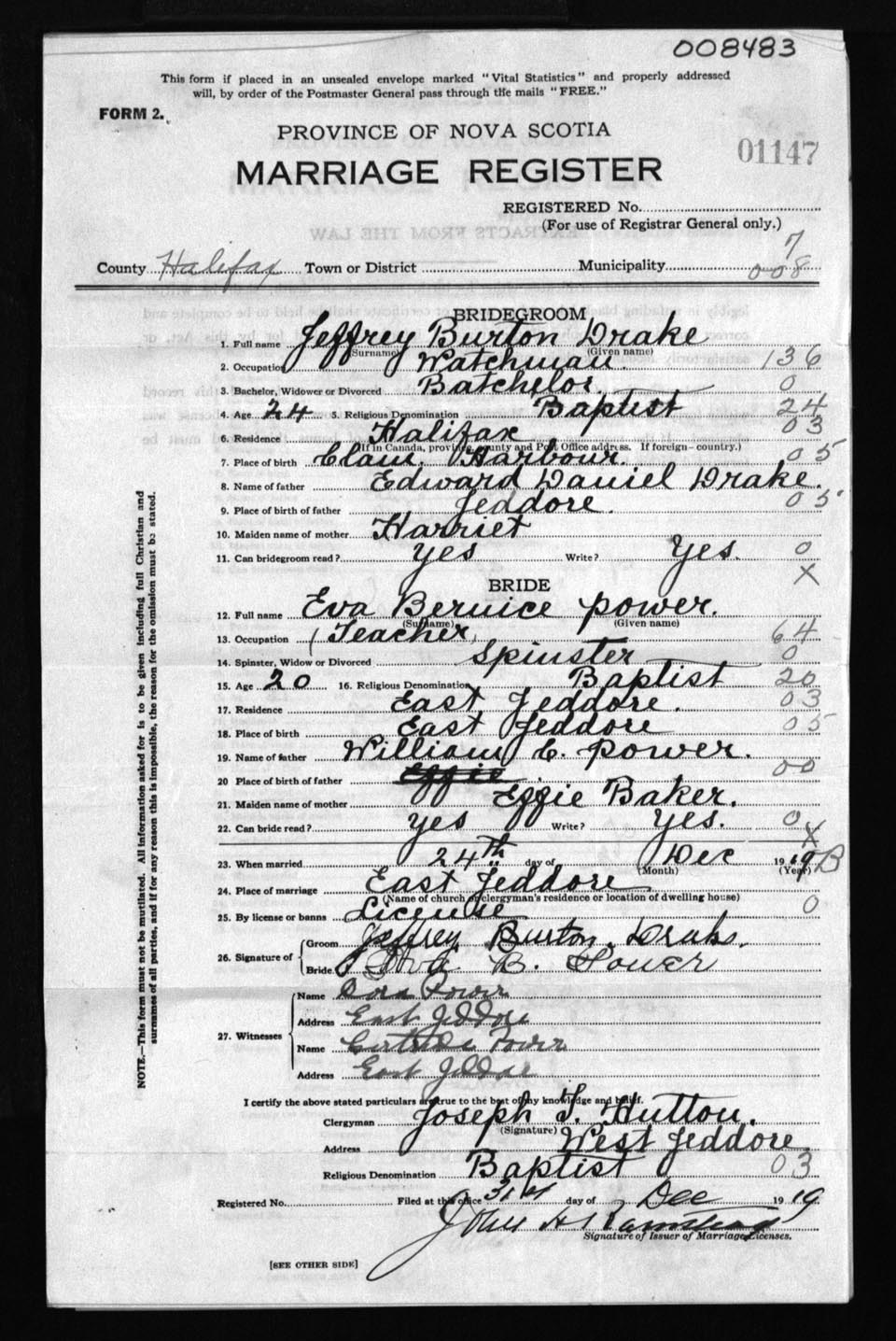 Registration: Year: 1919 number: 8483