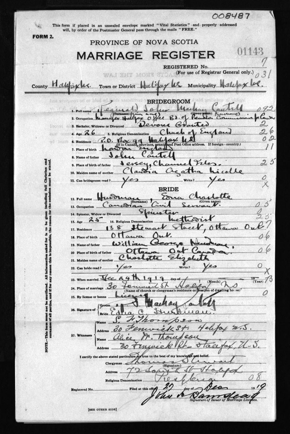 Registration: Year: 1919 number: 8487