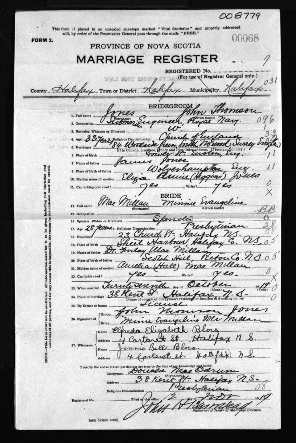 Registration: Year: 1919 number: 8779