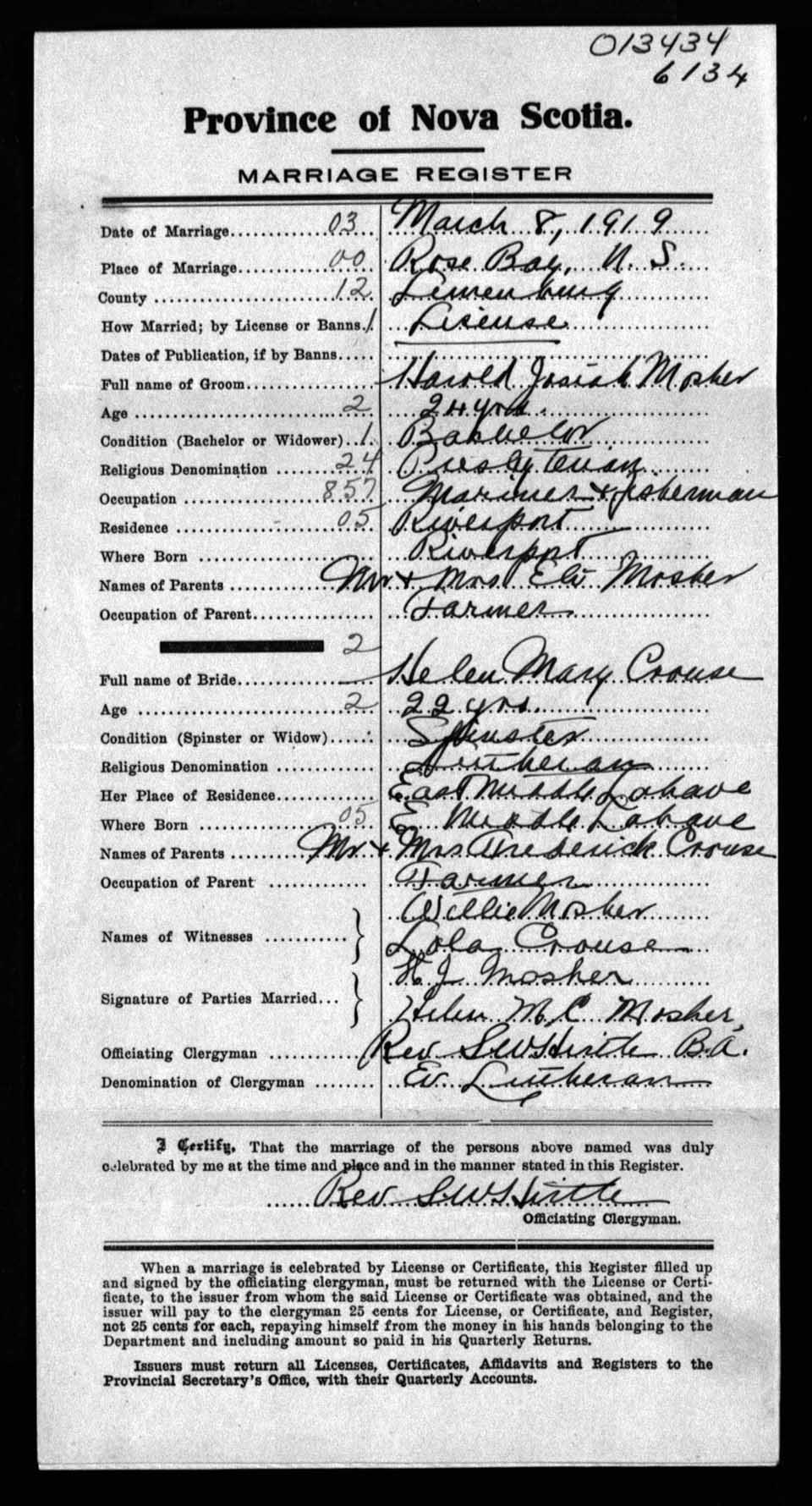 Registration: Year: 1919 number: 13434