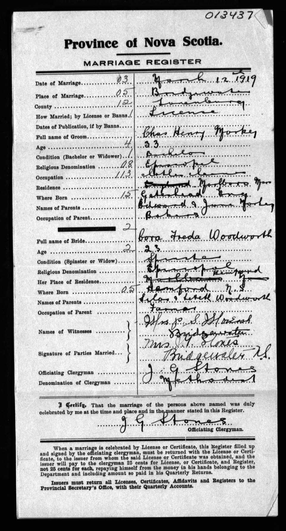 Registration: Year: 1919 number: 13437