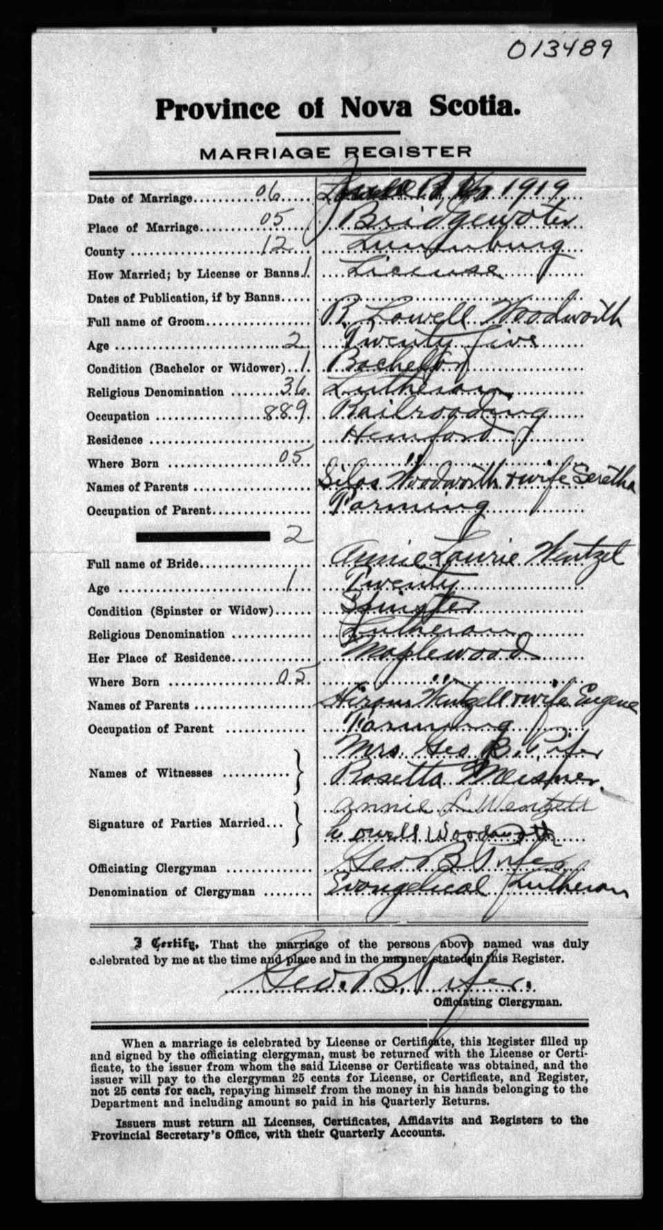 Registration: Year: 1919 number: 13489