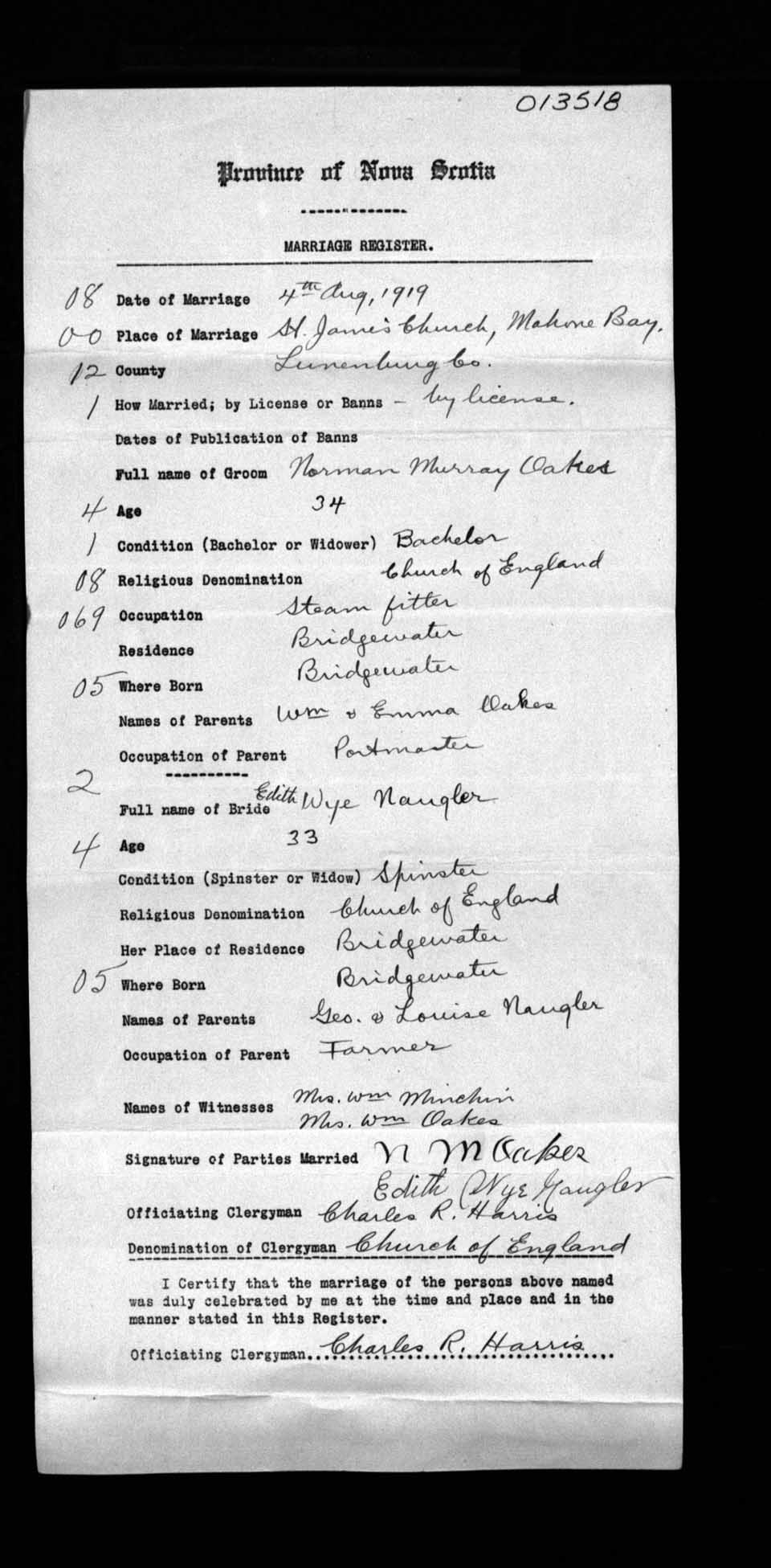 Registration: Year: 1919 number: 13518