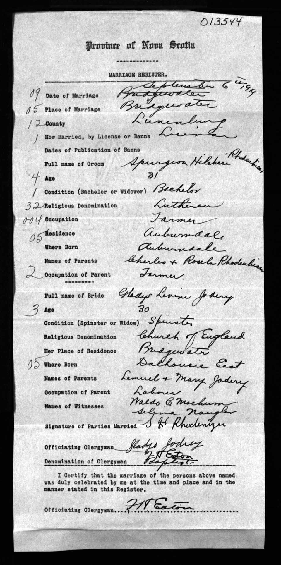 Registration: Year: 1919 number: 13544