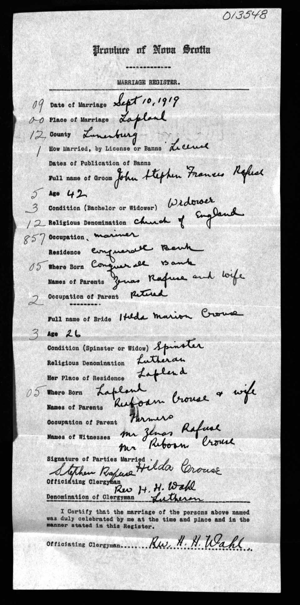 Registration: Year: 1919 number: 13548