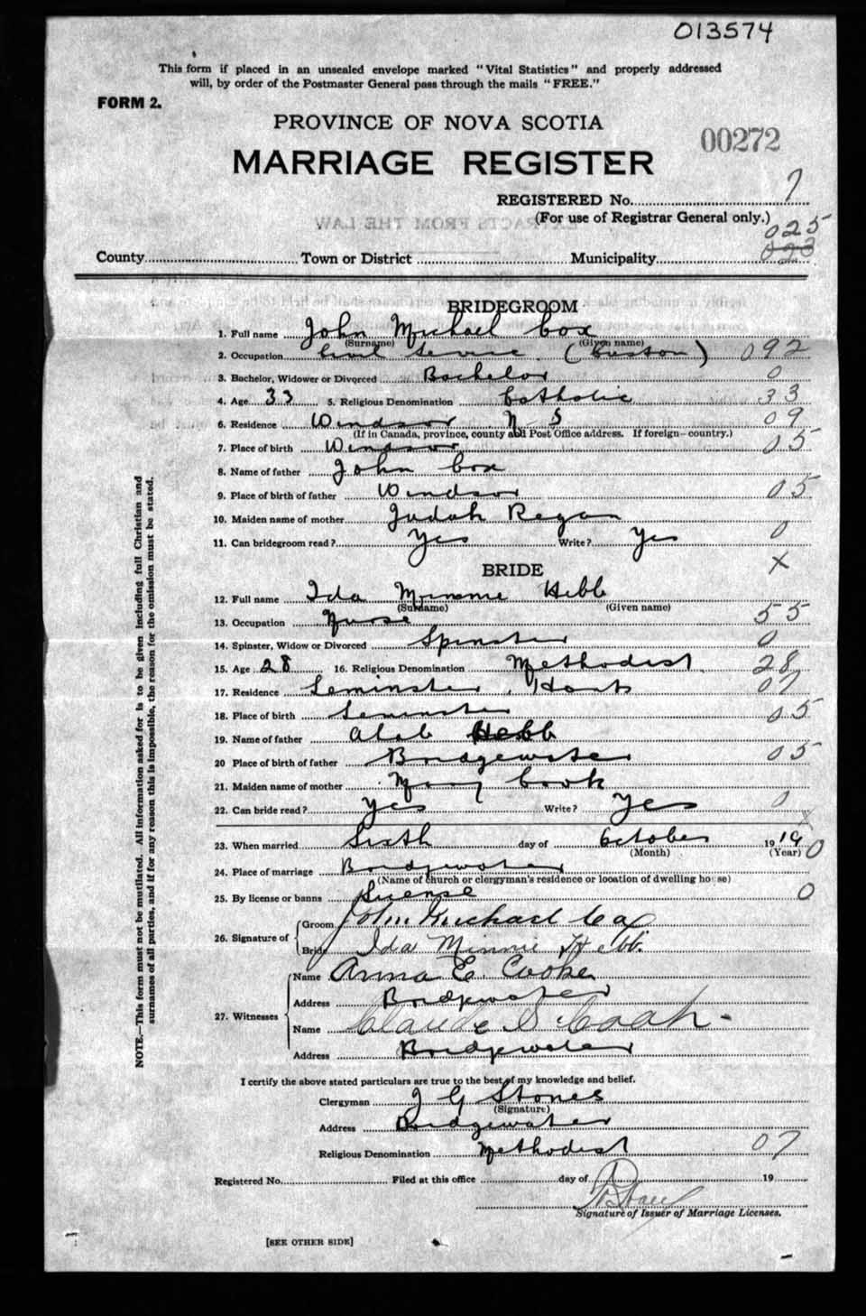 Registration: Year: 1919 number: 13574
