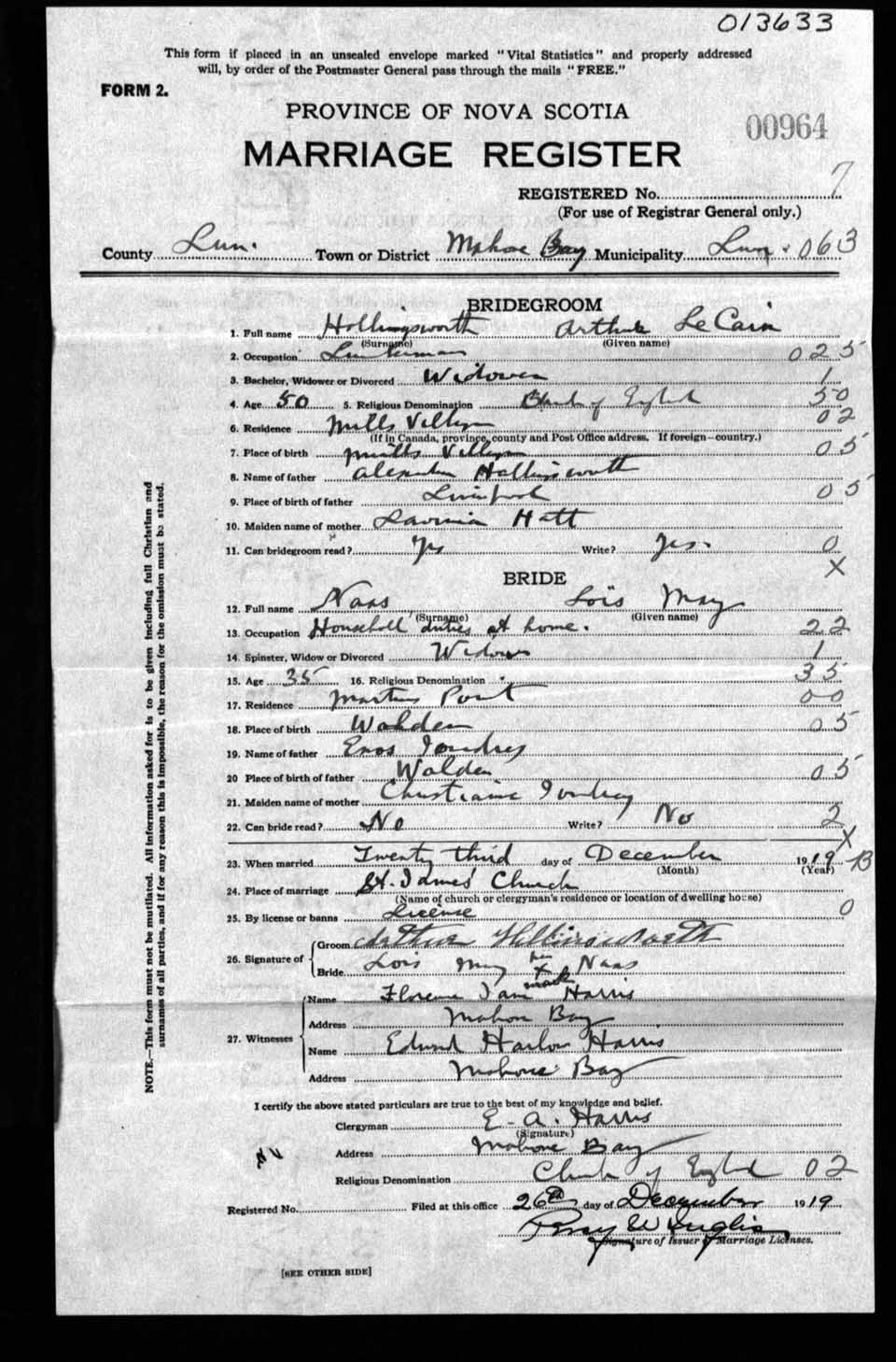 Registration: Year: 1919 number: 13633