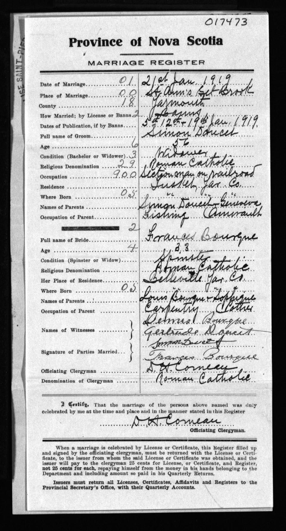 Registration: Year: 1919 number: 17473