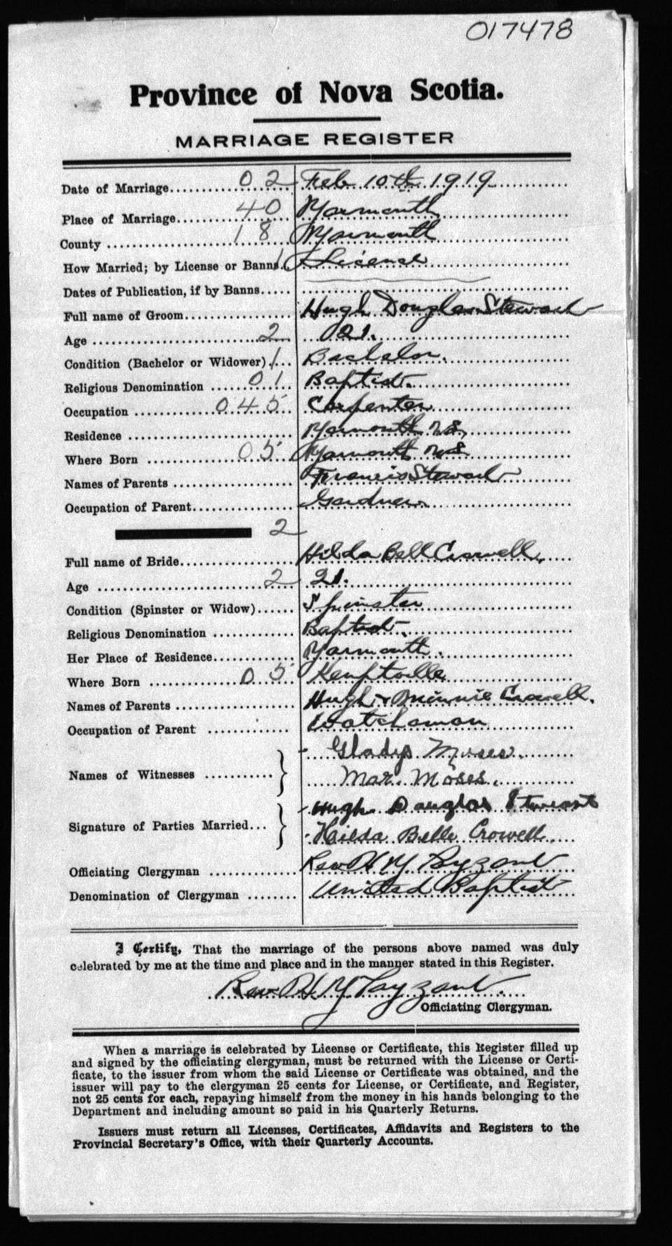 Registration: Year: 1919 number: 17478