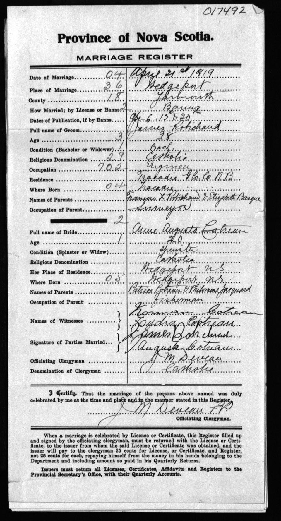 Registration: Year: 1919 number: 17492