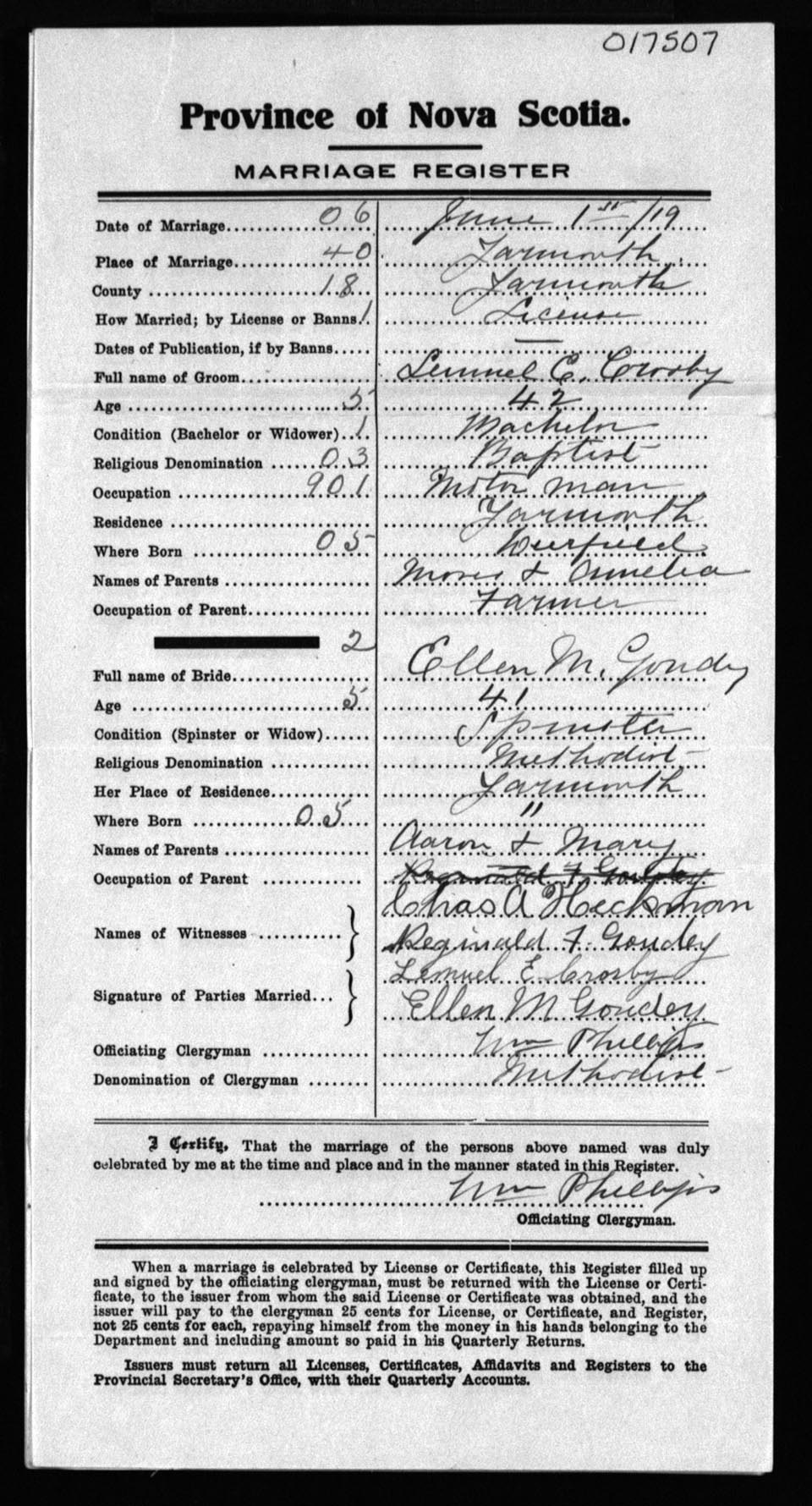 Registration: Year: 1919 number: 17507