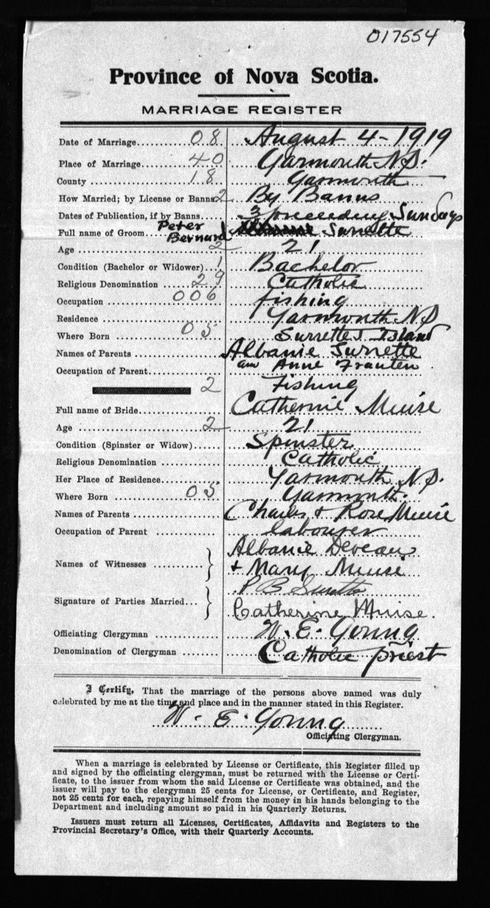 Registration: Year: 1919 number: 17554