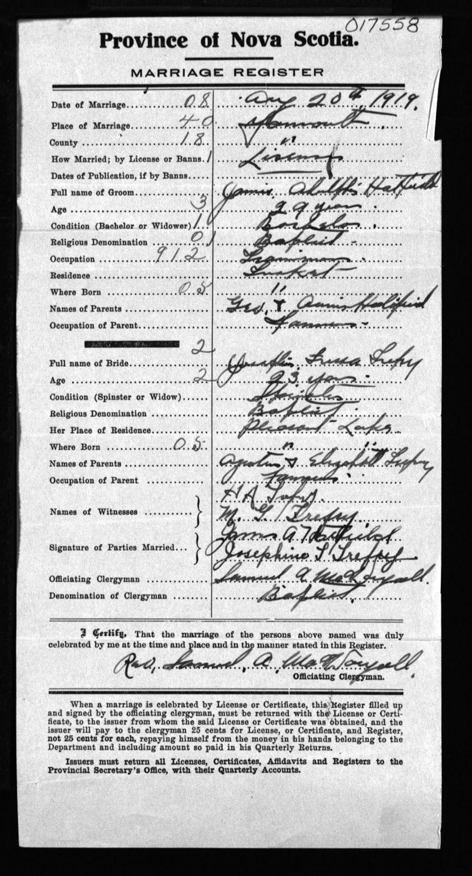 Registration: Year: 1919 number: 17558