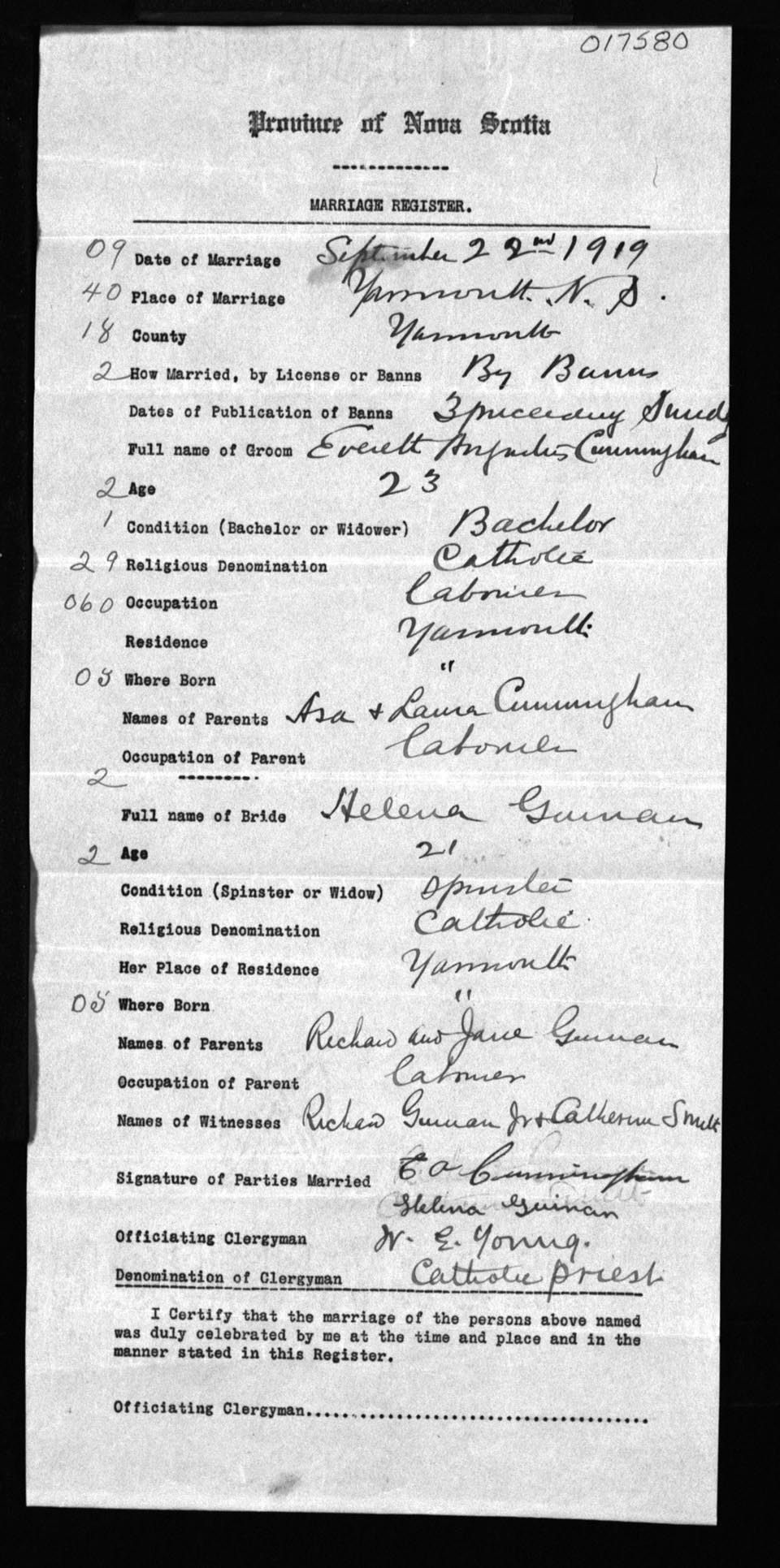 Registration: Year: 1919 number: 17580